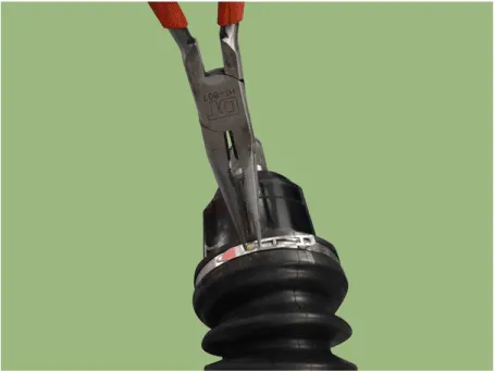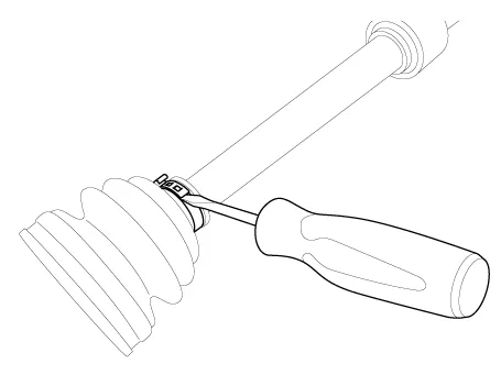 4.Using a plier or flat-tipped (-) screwdriver, remove the BJ boot bands (A).