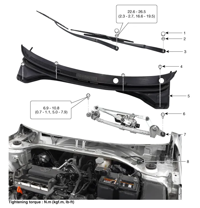 4.Remove the cowl top cover.(Refer to Body - "Cowl Top Cover")