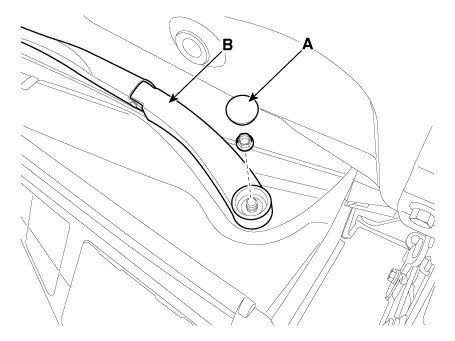 1.Loosen the windshield wiper arm nut after removing a wiper cap (A).