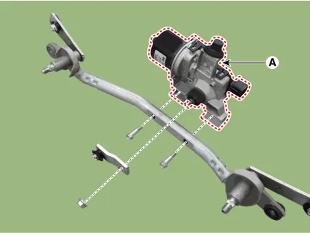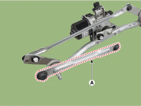 6.Hold the wiper motor crank arm and remove the upper linkage (A) from the wiper motor crank arm.