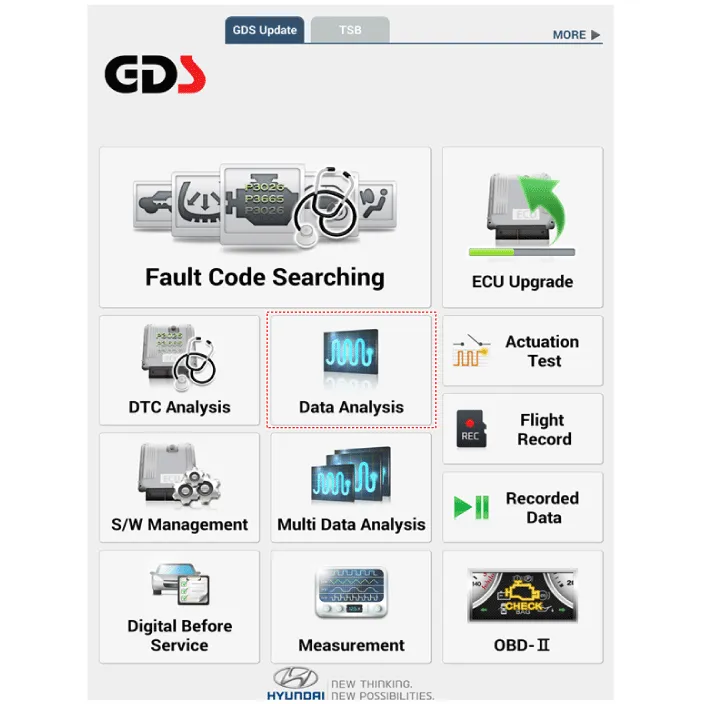 2.If diagnose the vehicle by Diagnostic tool, select "DTC Analysis" and "Vehicle".